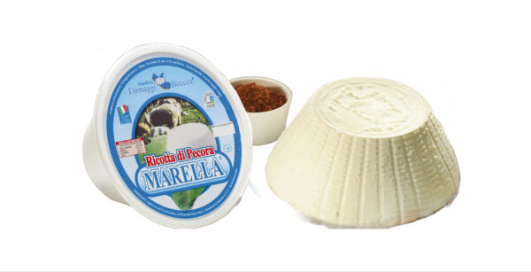 Tipica ricotta di latte di pecora. La “MARELLA” è oggi riconosciuta come una delle migliori sul mercato italiano, la prima sul mercato di Roma. L’aspetto cremoso ed il suo intenso profumo sono dovuti fondamentalmente alla freschezza del latte proveniente esclusivamente da pascoli laziali. Ottima da sola o come condimento per i più svariati cibi (dal caffè alla pasta), con miele, confetture e col cacao si trasforma in un dessert rapido, leggero e prelibato. La si può gustare sorseggiando vini bianchi, freschi, profumati e aromatici.